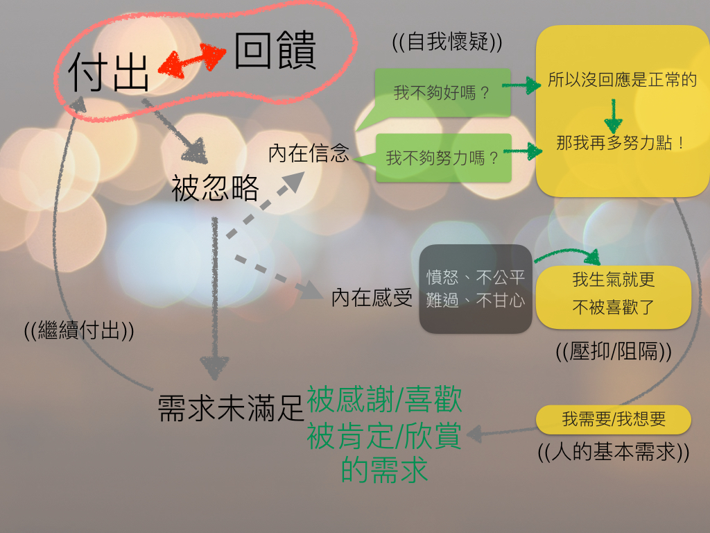 所以在弔詭的社會交換理論中,他們從對方身上獲得的,是「熟悉的感受與結果」,因此你被忽略、你不夠好、你要更努力的迴路被一再地強化。
