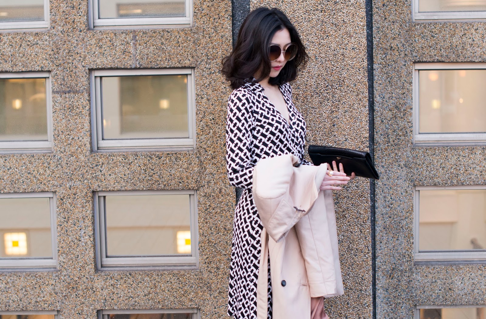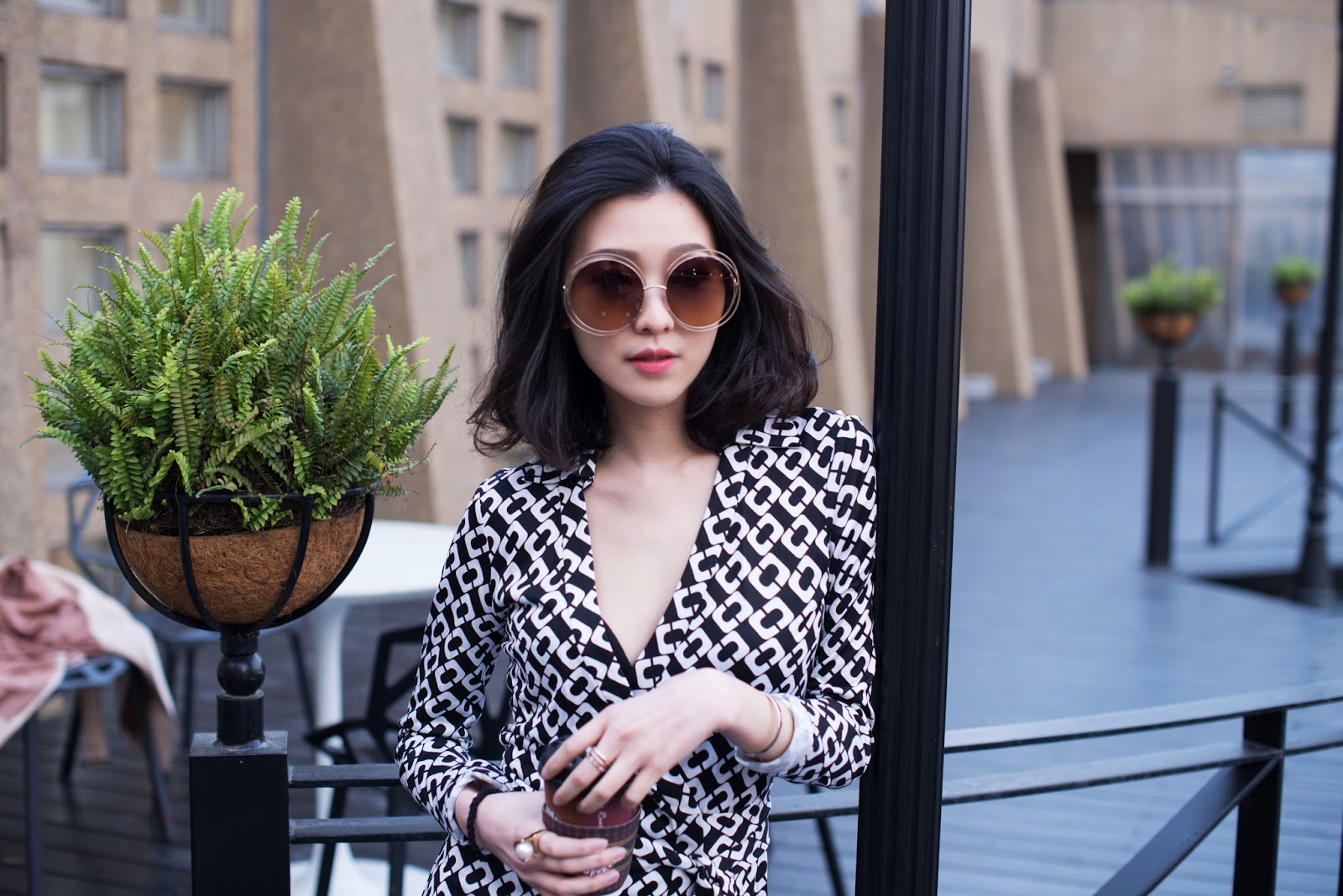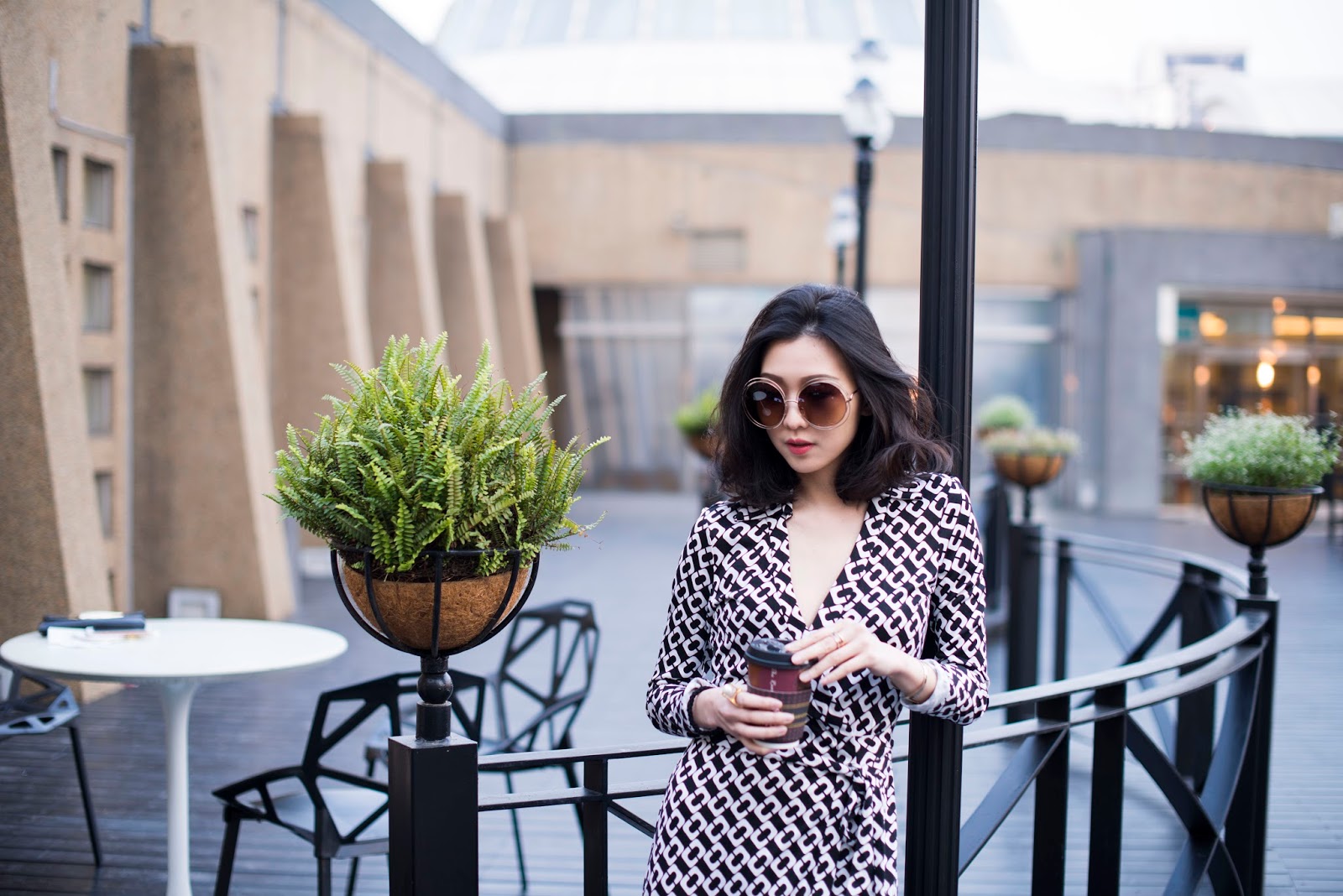 我真是超。愛 Wrap Dress 的!整個就是非常濃厚的復古味。配上今天的 Chloe 復古墨鏡一整個適合。 DVF 不遺餘力將復古的城市女郎精神灌注在品牌的時尚理念裡。