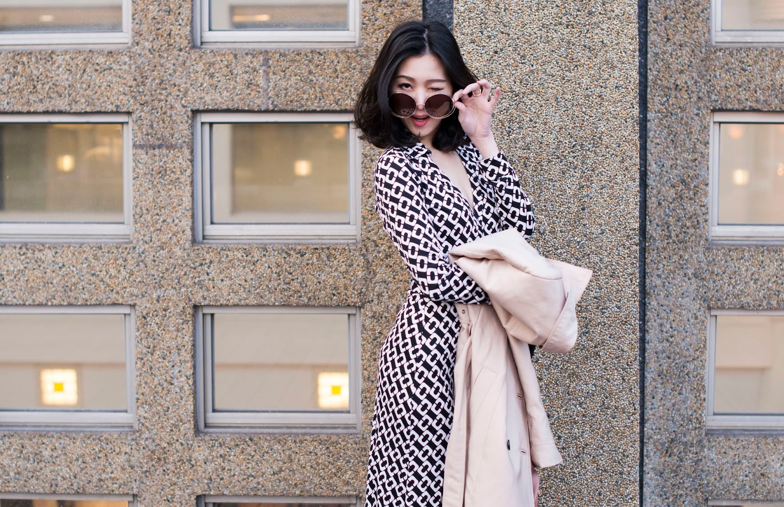我真是超。愛 Wrap Dress 的!整個就是非常濃厚的復古味。配上今天的 Chloe 復古墨鏡一整個適合。 DVF 不遺餘力將復古的城市女郎精神灌注在品牌的時尚理念裡。