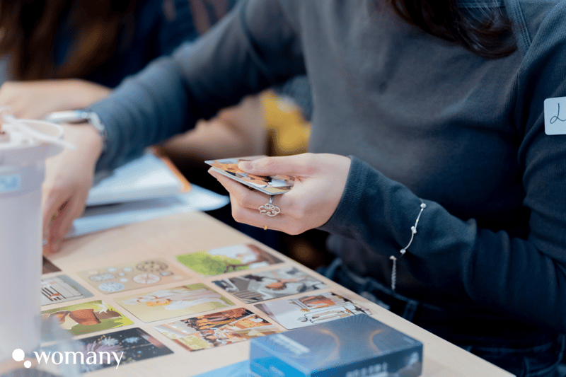 在實作練習中,Merci 帶領學員使用「女力覺醒牌卡」進行潛意識覺察,透過抽牌、審視、篩選的過程,拼湊出專屬於自己的「時間金字塔」。