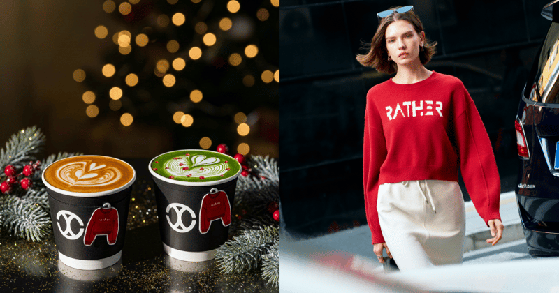 快閃限定的節慶咖啡飲品為香港首度亮相並開放搶先品飲,其中「抹茶草莓拿鐵」以抹茶的綠與草莓果乾的紅色堆疊出「可以喝的聖誕樹」,營造濃厚的聖誕氣息。並將 rather 的 LOGO 紅色羊毛針織上衣縮小成一款精緻的節慶毛衣小吊卡,掛上 CHLIV 經典紙杯,就像把像把一件溫暖的小小心意遞到每個人手裡。為 rather 香港海港城門市帶來暖冬限定的視覺與味覺饗宴。