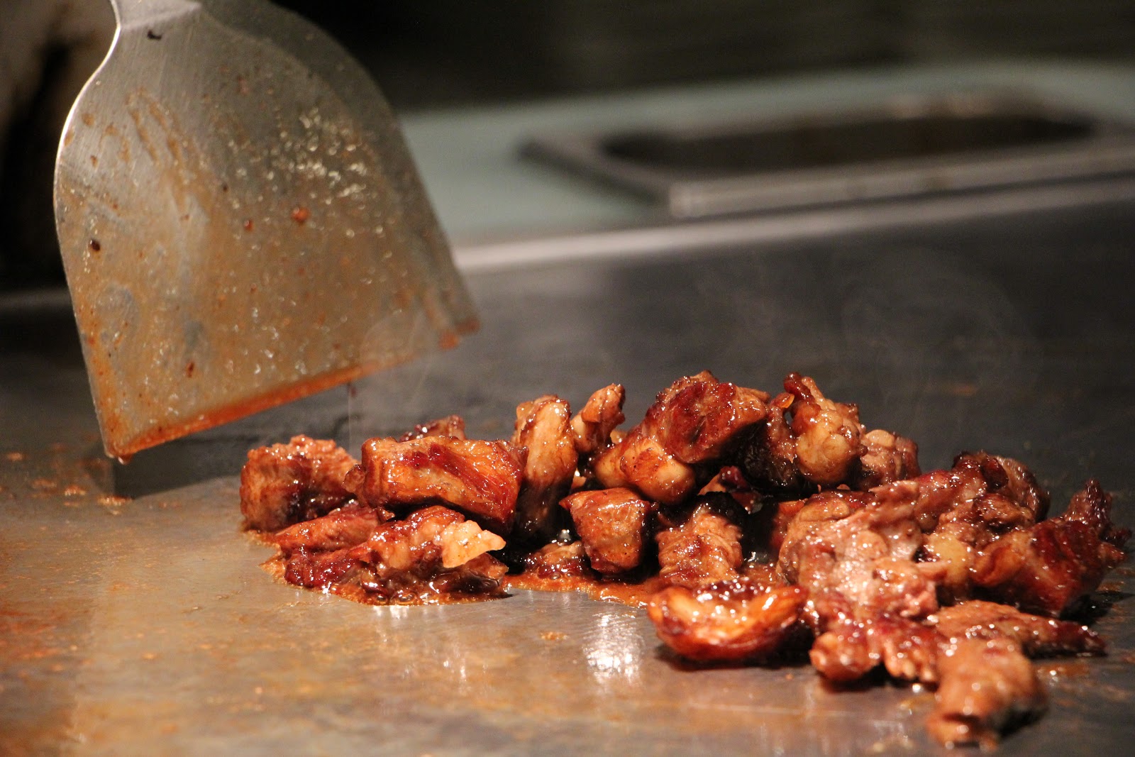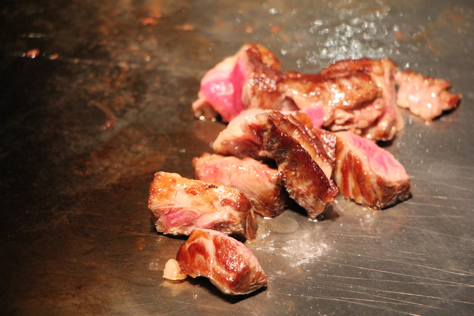 最後就是神秘的半筋半肉!我原本以為他一開始燃燒自己完就沒事了,結果竟然是隱藏料理!莊主廚跟我們說早期80年代在鐵板燒餐廳這道菜可是隱藏料理(講古時間~),他們都會把這個部位藏起來,等熟客來了才炒給他們吃,用葡萄牙波特酒加上奶油醬油燒,吃起來十分夠味,劃下牛排的完美句點。