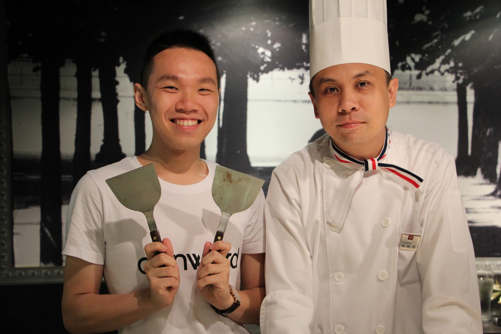 最後附上跟莊主廚的合照!從小到大就很想拿拿看鐵鏟,這次終於圓夢了!莊主廚本身是在板橋店服務(可去找他玩),因為是研發團隊的主廚,對每個菜色都像說故事般的逗趣介紹,這也是我很愛鐵板燒的原因,能跟主廚互動更了解自己吃的食物。至於試菜的店在長安東店,大夥服務很好,推薦大家跟親朋好友聚餐真的可以選夏慕尼,東西絕對不會讓你失望!