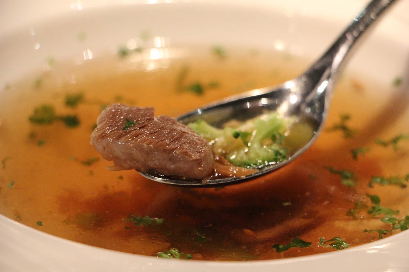 上面是炙燒海鮮清湯,蠻特殊的串燒方式裝飾,但喝起來比較一般,沒有牛肉湯驚艷。