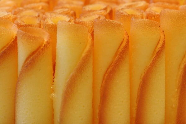 至於為何選擇以雪茄作為招牌蛋捲的外型呢?有次藤繩先生去法國,見了一幅名畫,裡頭盛放了法國 16、17 世紀的宮廷甜點捲心酥。他想著如果蛋捲能做成這樣,應該會很美味。他嘗試了很多次,又因為堅持口感的扎實所以最後將蛋捲捲成了將近三層的厚度。從 1969 年雪茄蛋捲問世以來,造型、口味完全沒有變過,而這也是藤繩先生的理念,他希望這項甜點不只是在當時獲得眾人喜愛,還能夠繼續流傳下去,讓後代人仍能品嚐到這樣傳統的美味。此外,藤繩先生認為身處於戰後的日本,人們需要一種扎實的幸福感,而如何帶來這種幸福感,就成為藤繩先生創造雪茄蛋捲的重要初衷。