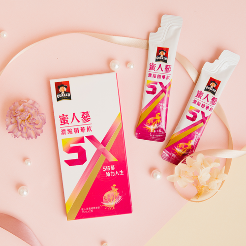 桂格懂妳,懂妳的需要也懂妳不想浪費每分每秒。桂格 5X 蜜人蔘濃縮精華飲,就是為了讓妳 快速補充能量而出現的,5X 蜜人蔘有5倍濃縮,讓身體好吸收,輕鬆維持好精神,配方含有的蜂蜜 、紅棗更可以幫助身體促進循環、新陳代謝,在任何時刻都支持著妳、保有紅潤氣色,展現最自在又自信的自己。 -